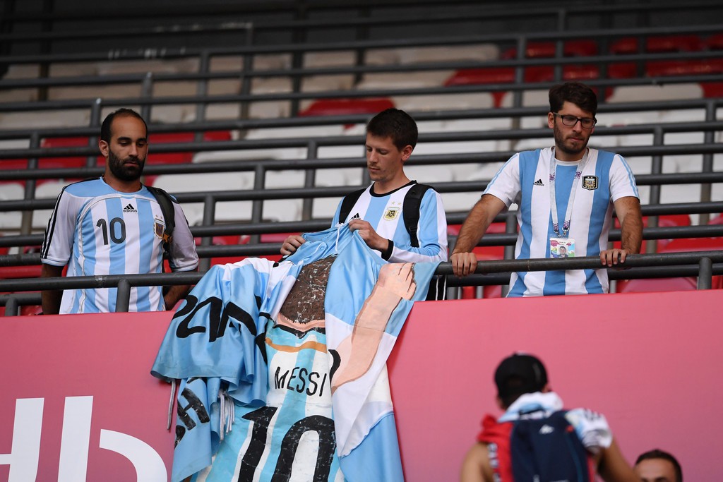 Người những bức hình khổng lồ, những tấm band-role, các cổ động viên Argentina còn mang theo cả mặt nạ của chân sút sinh năm 1987.