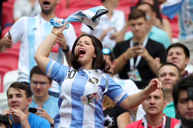 SVĐ Kazan ở Tatarstan với sức chứa 45.000 chỗ ngồi đã gần như chật kín khán giả tới sân để chứng kiến trận đấu giữa Pháp và Argentina ở vòng 1/8 World Cup 2018. Những cổ động viên đến từ xứ Tango nổi bật với những màn cổ vũ hoang dã mang đậm chất Nam Mỹ.